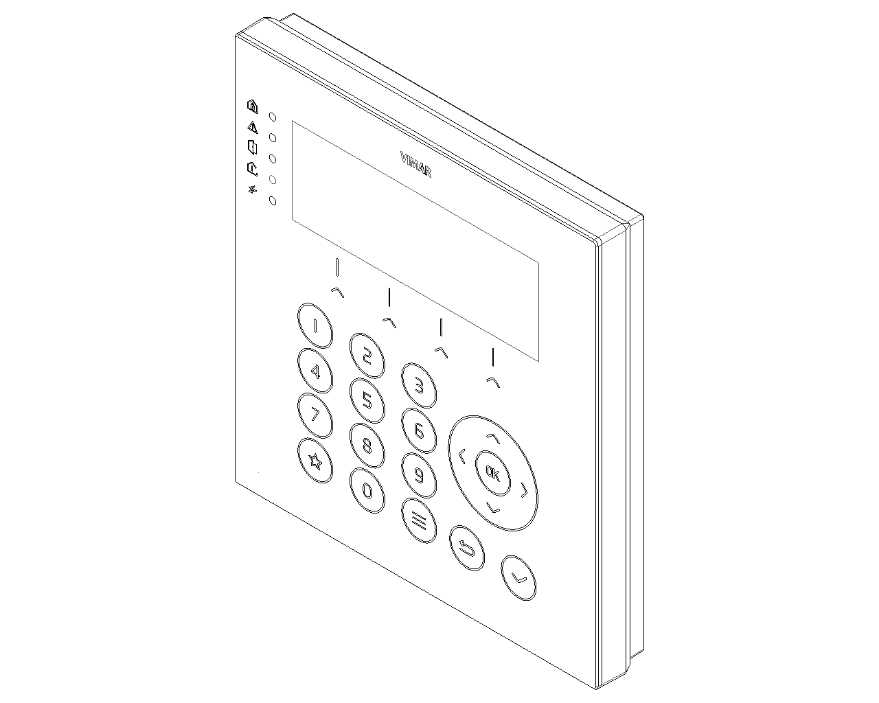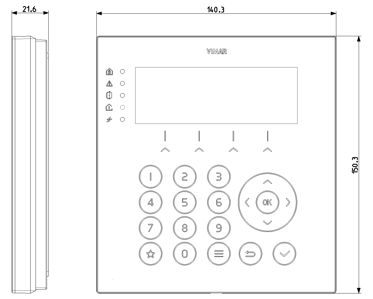 By-alarm Plus keypad with monochrome LCD display, 12 VDC power supply, 23 backlit keys, 5 status LEDs, surface mounting