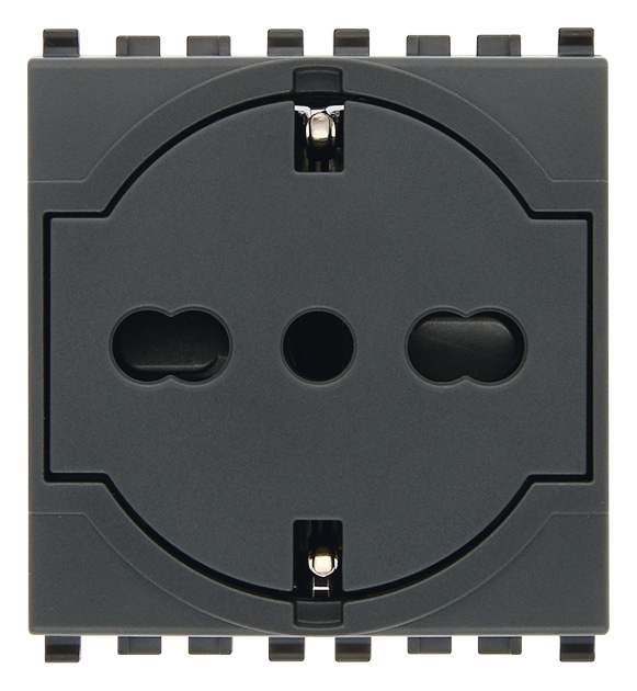 SICURY 2P+E 16 A 250 V~ universal socket outlet, Italian standard P40, flush-fitting, grey - 2 modules