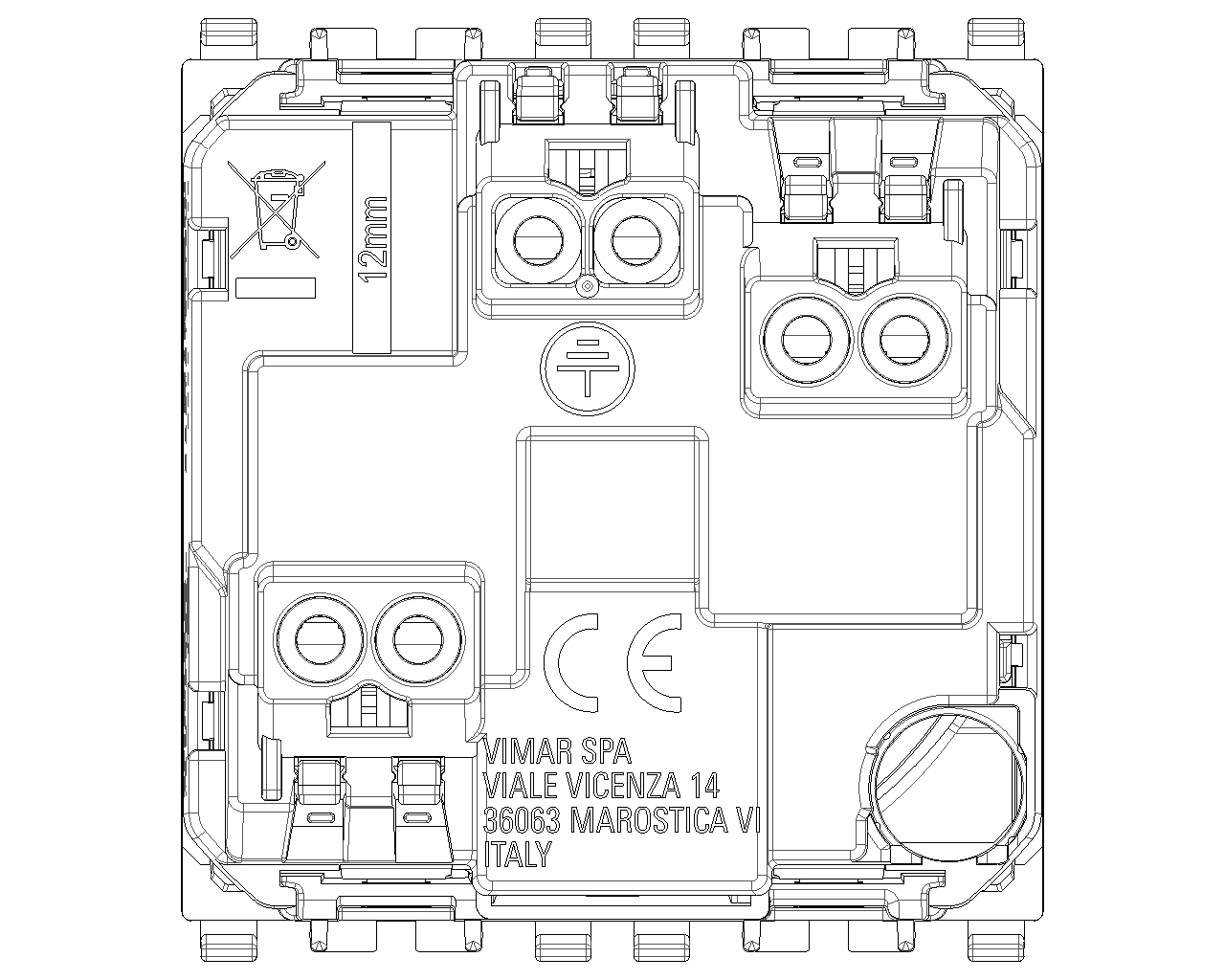 Vimar保留随时修改所示产品的特性的权利,恕不另行通知。 安装必须由符合资质的人员执行,严格遵守所在国家现行的电气材料安装相关规定。 有关产品卡信息的使用条件,请参阅 使用条件。