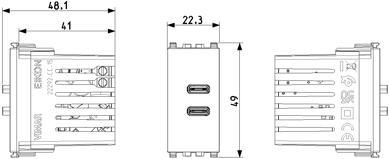 Vimar保留随时修改所示产品的特性的权利,恕不另行通知。 安装必须由符合资质的人员执行,严格遵守所在国家现行的电气材料安装相关规定。 有关产品卡信息的使用条件,请参阅 使用条件。