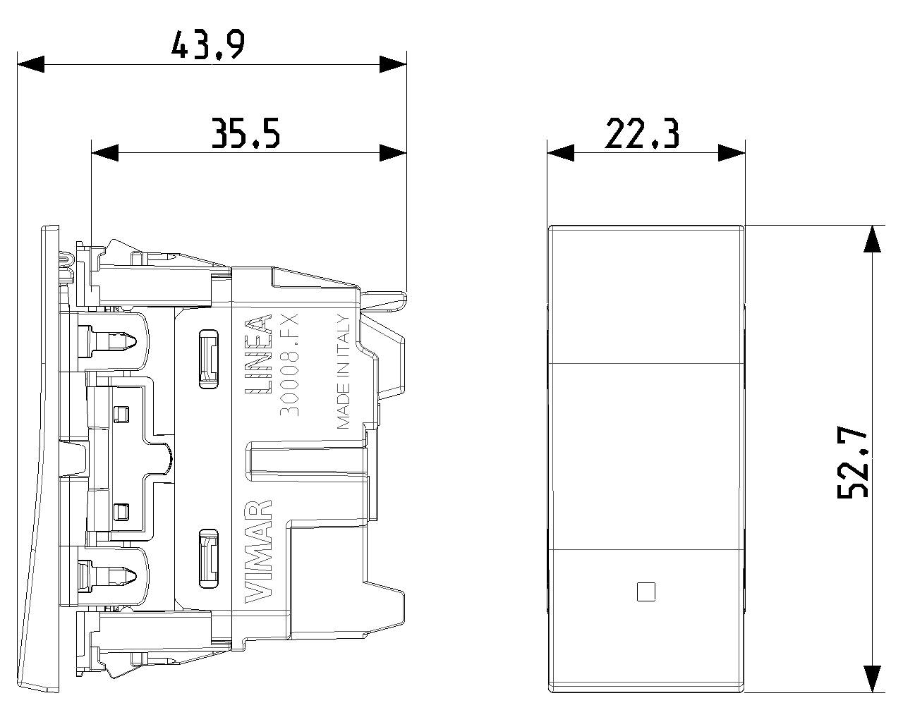 Vimar保留随时修改所示产品的特性的权利,恕不另行通知。 安装必须由符合资质的人员执行,严格遵守所在国家现行的电气材料安装相关规定。 有关产品卡信息的使用条件,请参阅 使用条件。