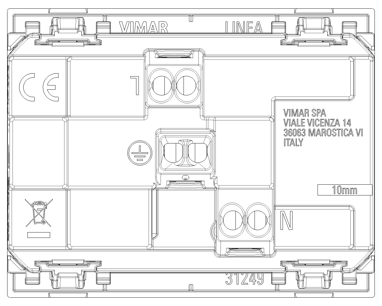 Vimar保留随时修改所示产品的特性的权利,恕不另行通知。 安装必须由符合资质的人员执行,严格遵守所在国家现行的电气材料安装相关规定。 有关产品卡信息的使用条件,请参阅 使用条件。