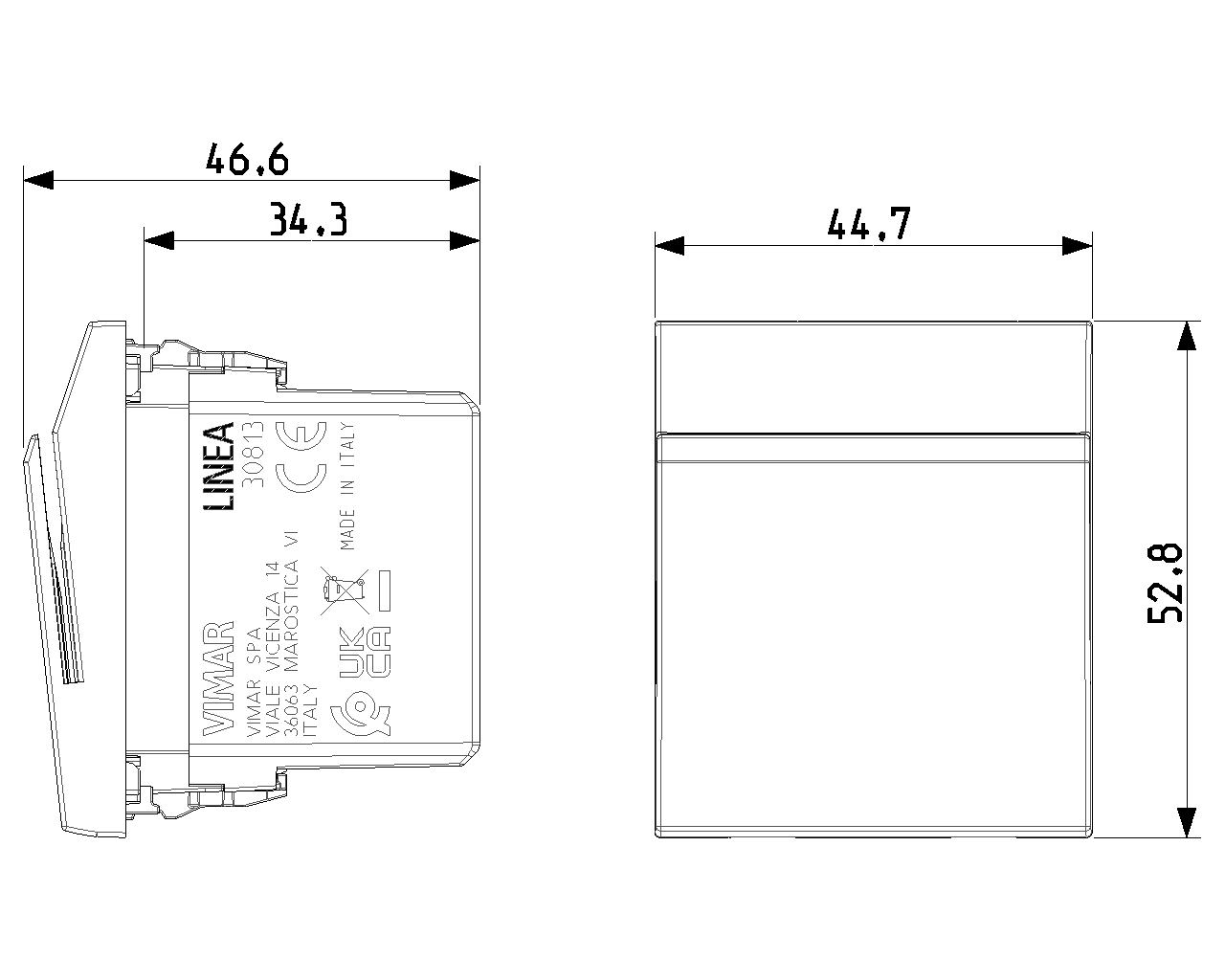 Vimar保留随时修改所示产品的特性的权利,恕不另行通知。 安装必须由符合资质的人员执行,严格遵守所在国家现行的电气材料安装相关规定。 有关产品卡信息的使用条件,请参阅 使用条件。