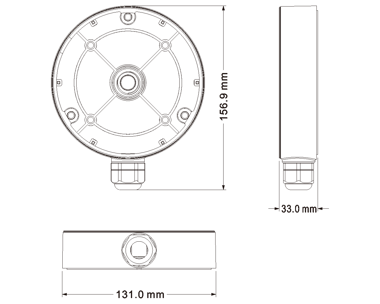 Contacts box bracket for IP Fisheye cameras, for ceiling and surface mounting